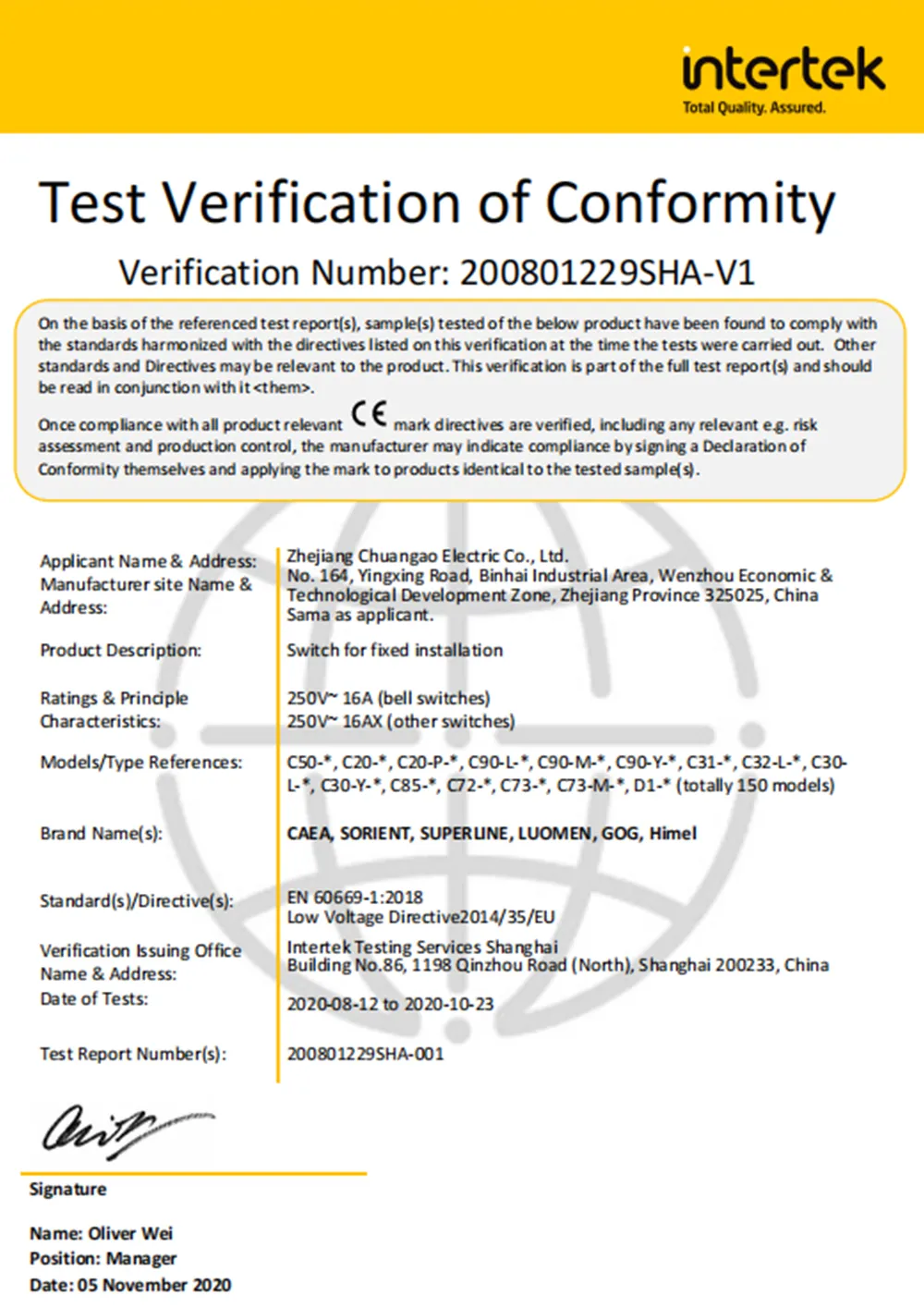 ООО Вэньчжоу Уолтон Электроаппаратура